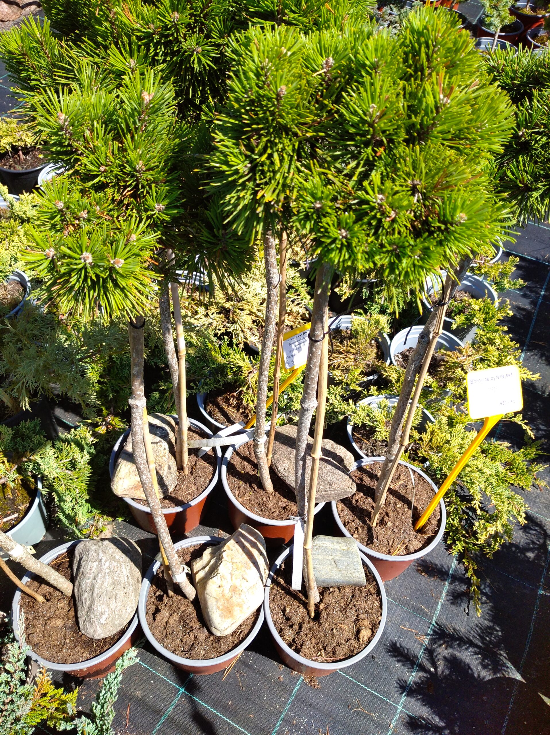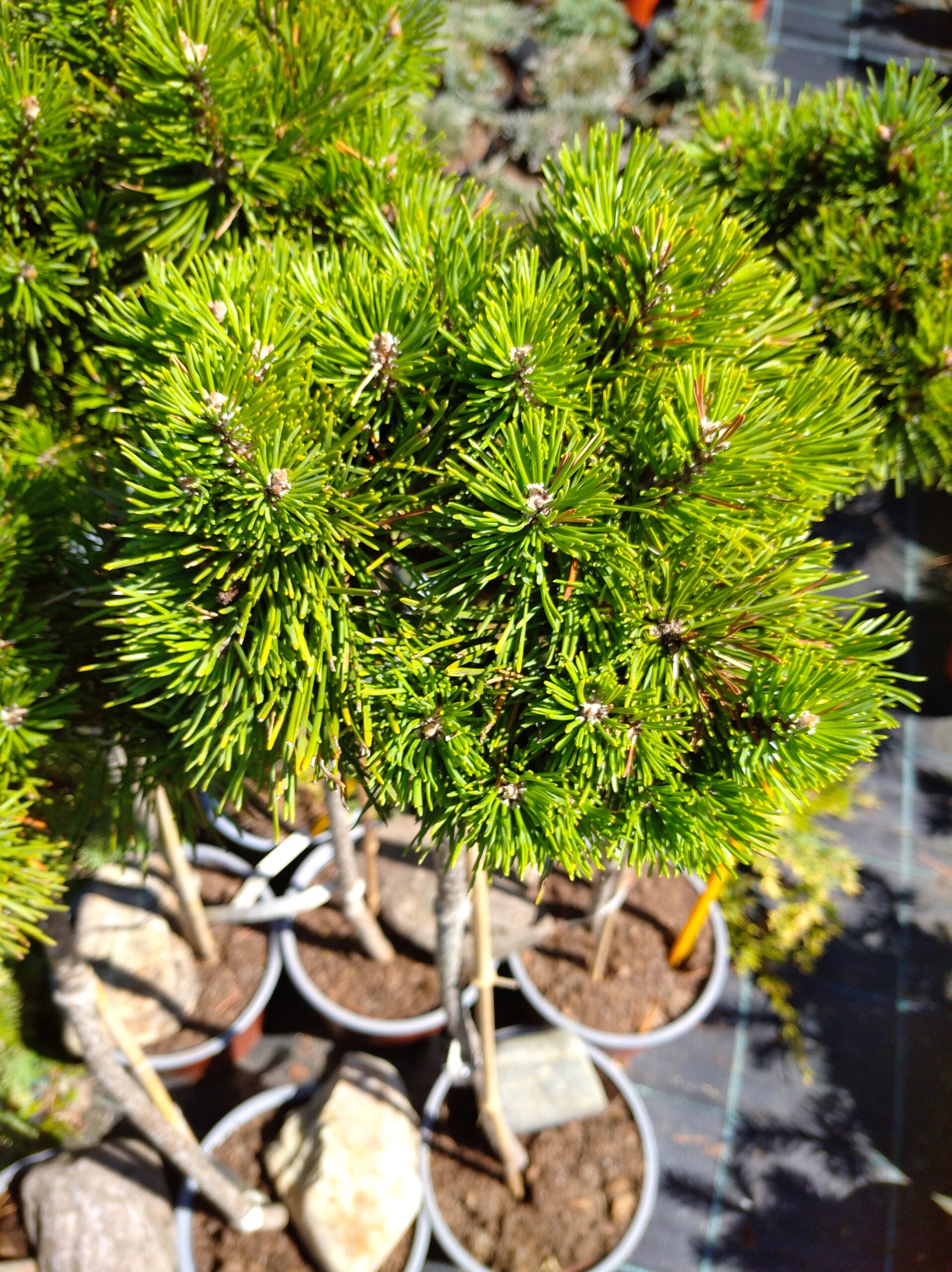 Zkrslá kompaktní forma borovice, kmínek pomalu rostoucí, sytě zelená vzrůst 0,5 – 1m stanoviště slunné Cena 650,-Kč